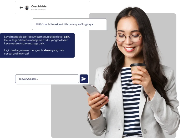 Coach Maia adalah asisten AI pribadi yang membantu Anda memahami hasil profiling Anda secara real-time — menjelaskan pola pikir, potensi, dan tantangan Anda dengan bahasa yang mudah dimengerti, tersedia 24/7!