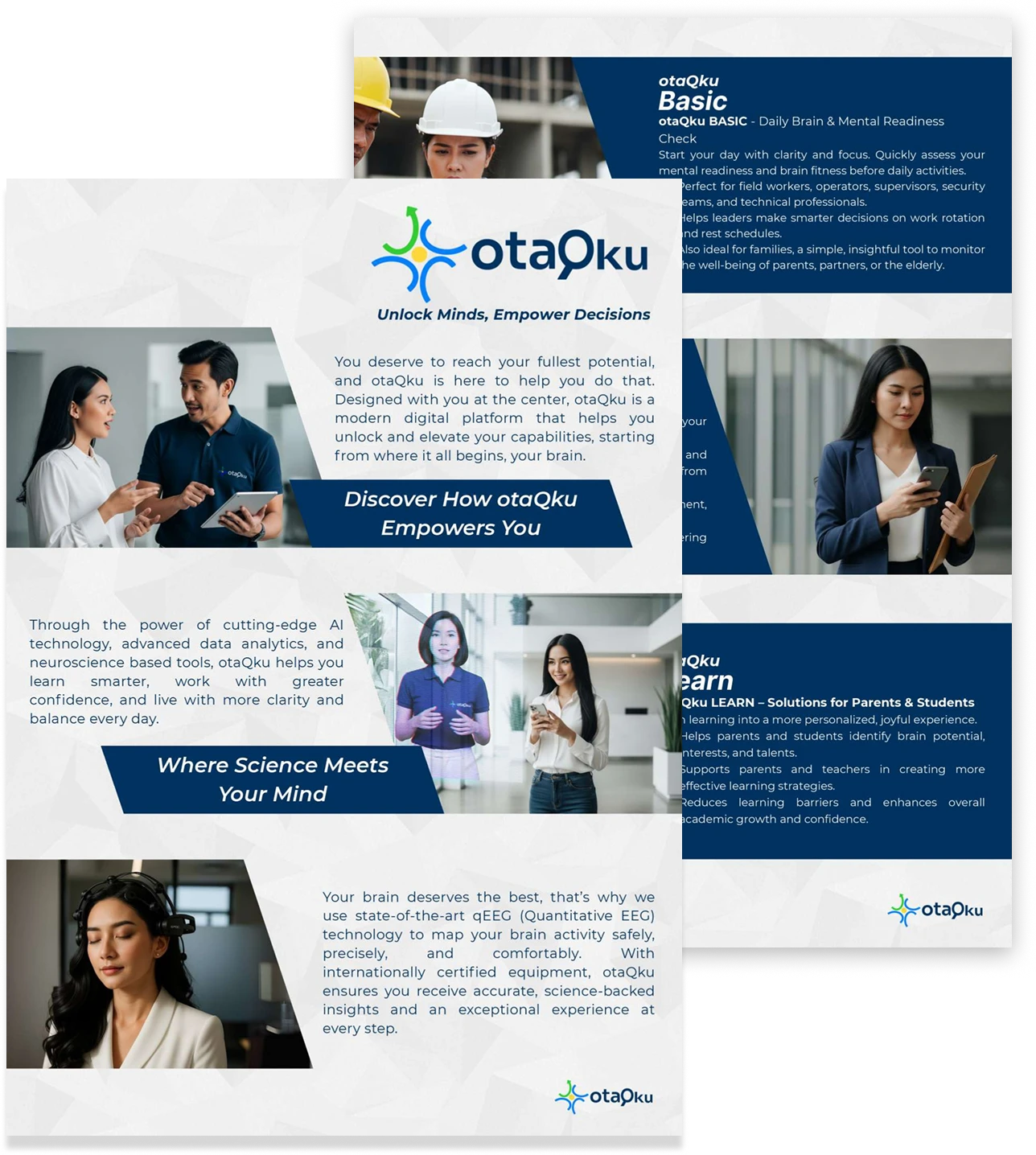 otaQku adalah profil kinerja otak berbasis neuroscience dan kecerdasan buatan (AI) yang dirancang untuk membantu Anda memahami dan mengukur potensi diri.