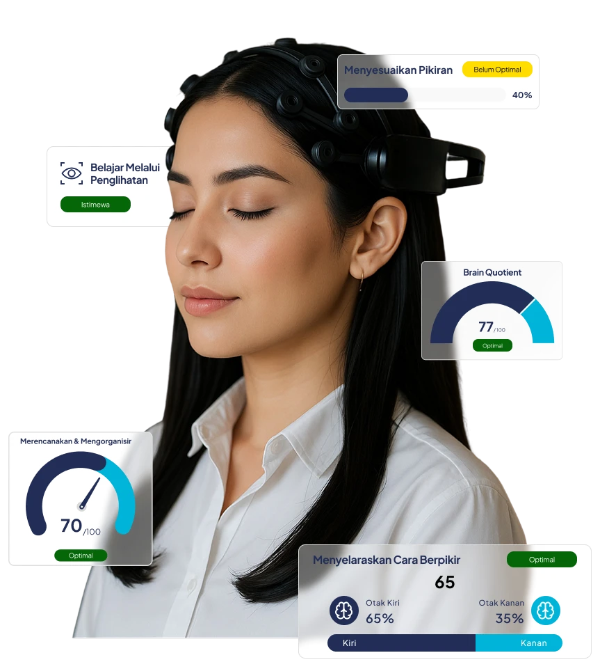 Dapatkan insight pengembangan diri, karir dan keluarga hanya dalam 5 menit pemindaian otak. Tanpa Survei. Tanpa Kuesioner.