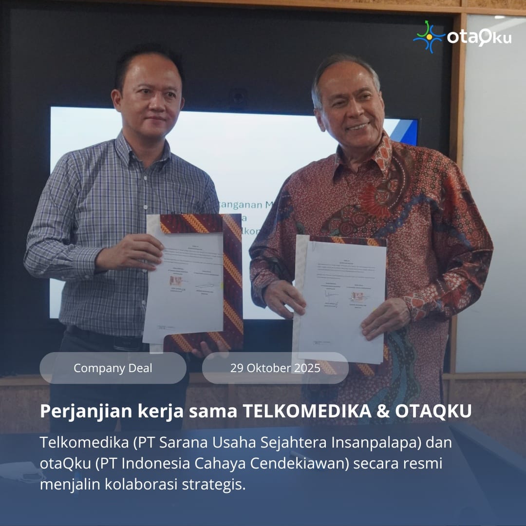 Telkomedika (PT Sarana Usaha Sejahtera Insanpalapa) dan otaQku (PT Indonesia Cahaya Cendekiawan) secara resmi menjalin kolaborasi strategis.